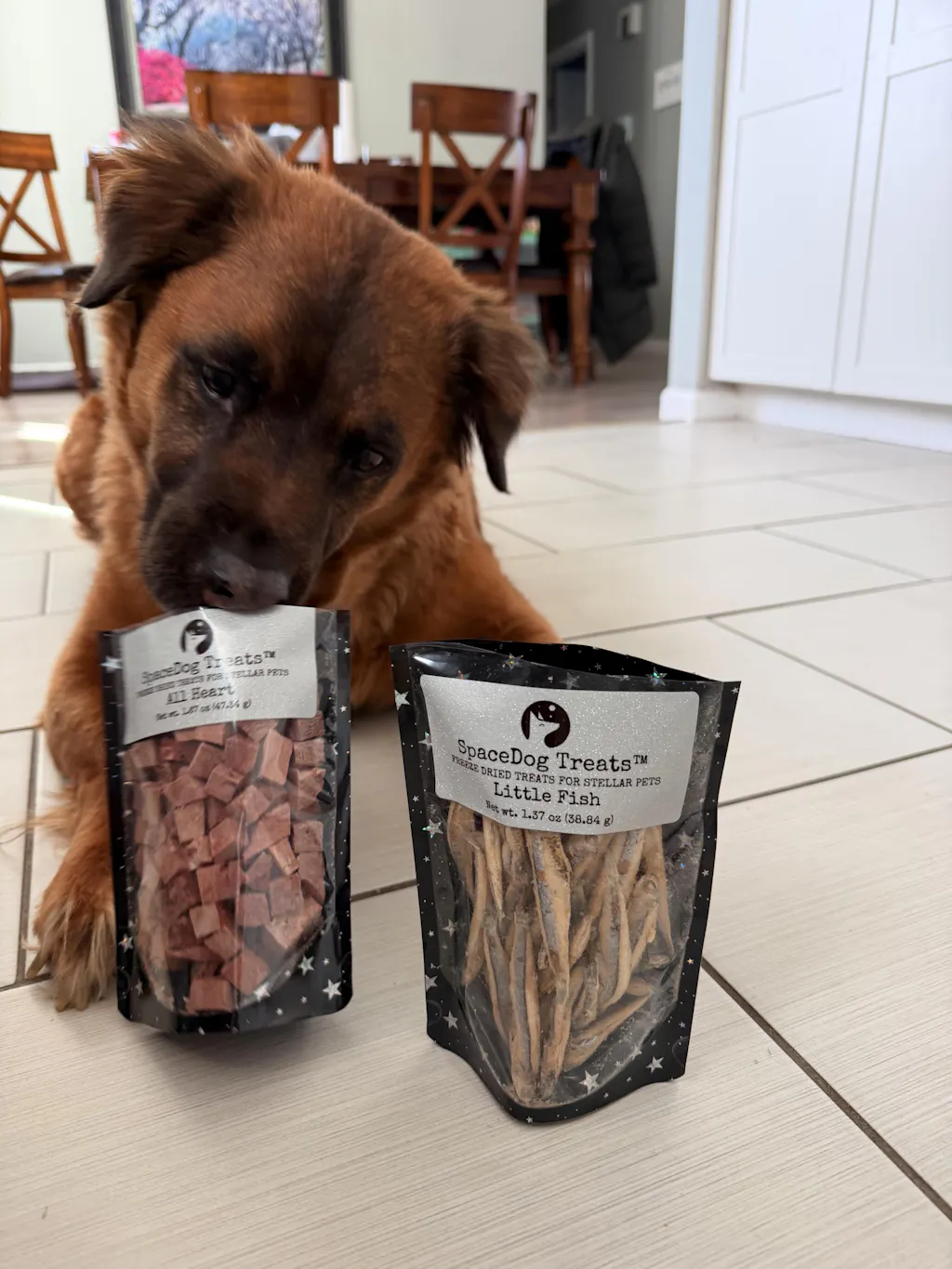 Serendipity is obsessed with French Fries and will do almost anything for a fry. Her first taste of Little Fish was as enthusiastic as any time she sees fries and Little Fish are much easier to stash in a training bag!